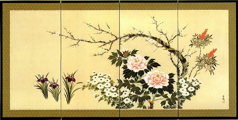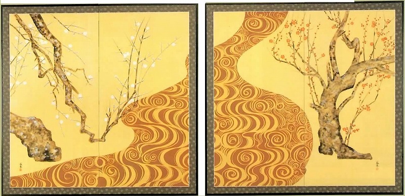| 「白梅に桜」 | 「山水図」 | 「紅白梅に桜」 | ||||||||||||||||||