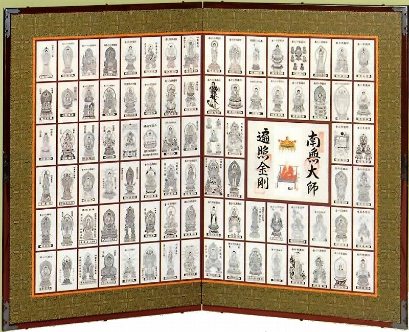 | 絹地本銀朱二曲屏風 | 高級札貼二曲屏風(四国八十八ヶ所札貼) | |||||||||||||||||||