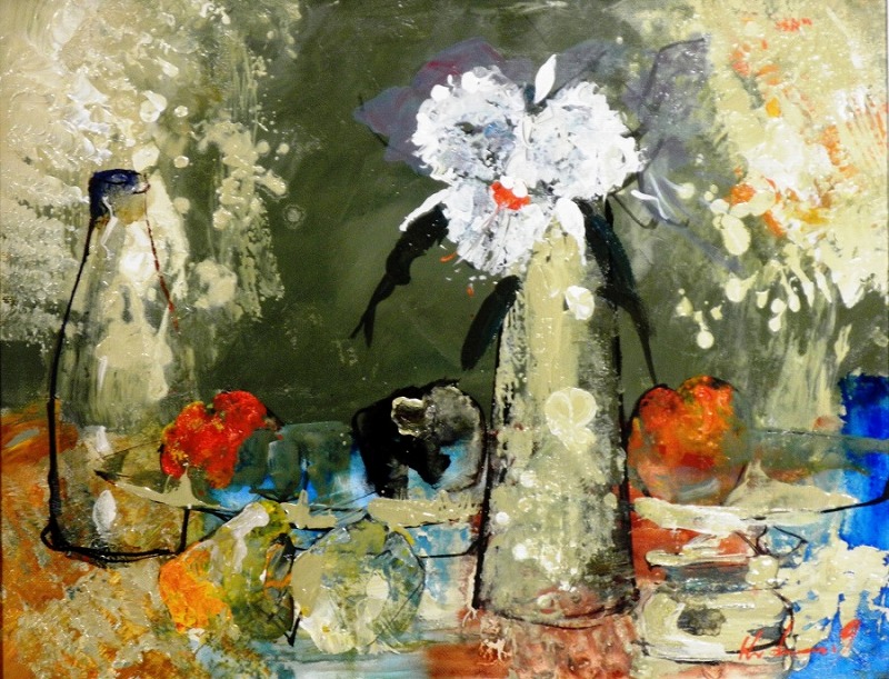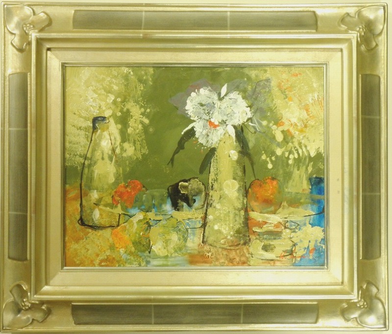 油絵【送料・手数料無料】商品番号:CD5043 「りんごと花」 池田 秀郎 高級額縁入り 詳細