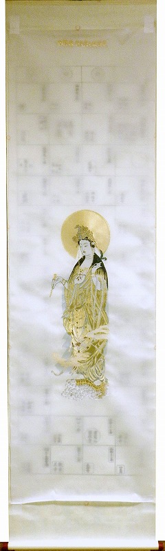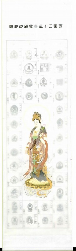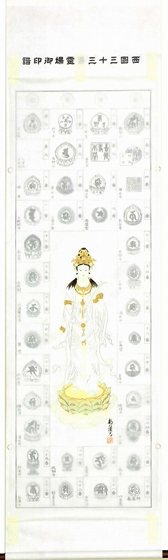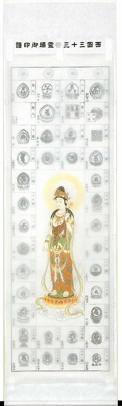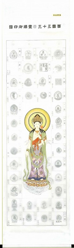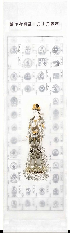 | 品番:B0437 「西国三十三ヶ所巡拝御宝印譜」 正面墨彩観音(マクリ仮巻袋付き) 定価45,360円(税込)を20%offの特価36,288円(税込) |